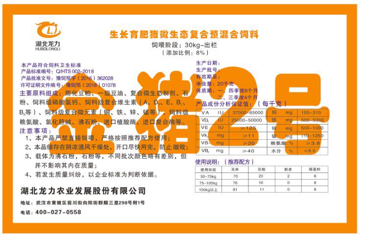 湖北龍力農(nóng)業(yè)發(fā)展股份有限公司坐落于武漢市黃陂區(qū)前川街向陽(yáng)街群順三里298號(hào)附1號(hào)。公司成立于2014年6月,公司自成立以來把“創(chuàng)全球最大養(yǎng)豬綜合服務(wù)”為企業(yè)愿景。致力于打造教保料品牌”作為公司發(fā)展的明確目標(biāo)。公司一直致力于豬營(yíng)養(yǎng)的研究和開發(fā),積極與國(guó)內(nèi)外高校和科研機(jī)構(gòu)合作,推廣養(yǎng)豬技術(shù)、動(dòng)物營(yíng)養(yǎng)新概念,向世界農(nóng)牧企業(yè)學(xué)習(xí)與合作。公司采用國(guó)內(nèi)先進(jìn)的生產(chǎn)工藝,選擇高精度電子配料秤,高均勻度、無殘留混合機(jī)等先進(jìn)設(shè)備....
